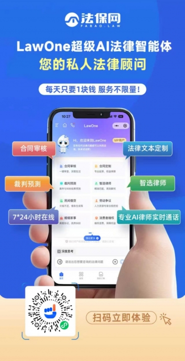 ✔专业法律顾问随时在线,全民必备的口袋法律专家[LawOne],从“提效工具”到“完整法律服务交付”的跨越,让法律服务不再昂贵,遇法律问题像扫码点餐一样简单快捷。扫码即可免费体验!