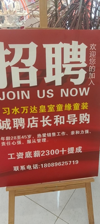 万达二楼招聘导购,有责任心、有耐心、有销售经验,会穿搭,陈列,会简单的...